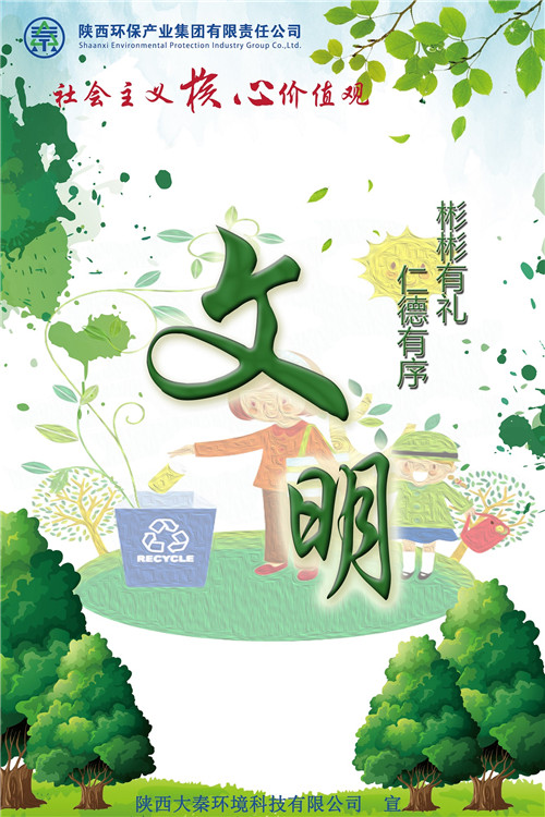 整組作品以“綠”為底色,將綠色環保理念與社會主義核心價值觀有機結合,體現了鮮明的行業特色,代表著陜西環保集團始終堅持環保為民、產業報國的企業宗旨。