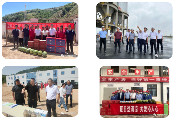 驕陽似火,酷暑難當。劉青剛先后前往榆林分公司、大秦公司、油氣公司、園區開發公司、延安分公司、保隆公司、三秦環保股份公司所屬的12個項目點進行慰問,包含環境空氣監測、污水處理、固廢處理、生產運維等陜北片區重點項目,將近200份慰問品送到一線職工手中,為高溫作業的職工送去實打實的關愛。