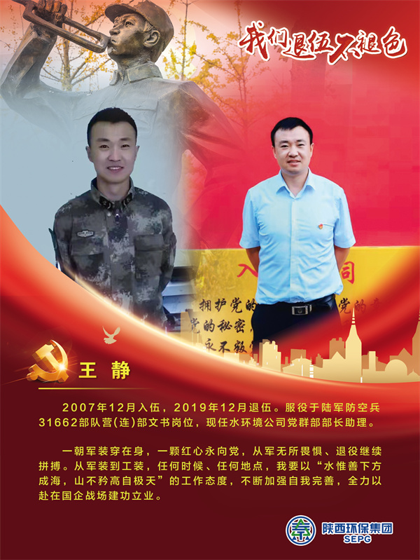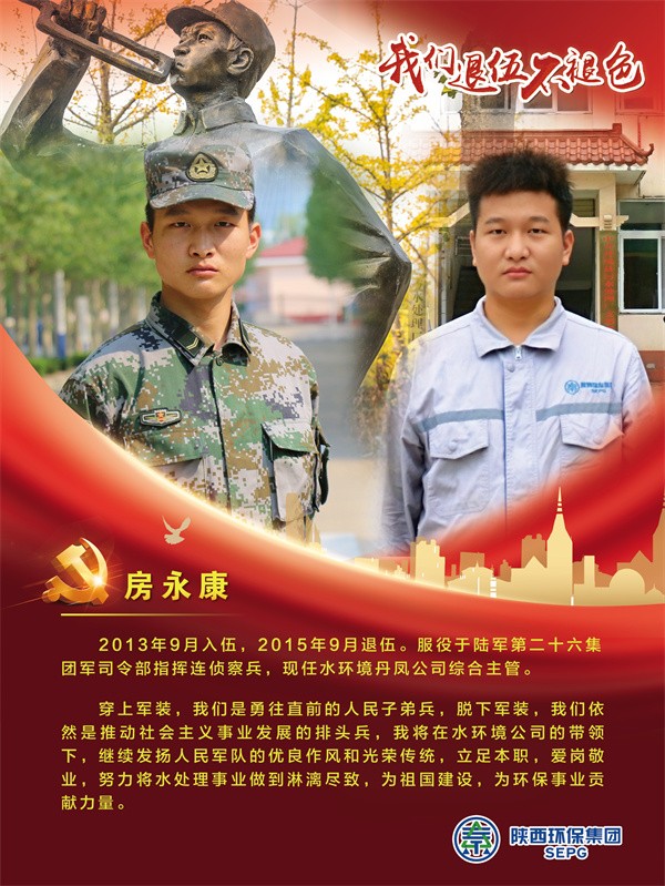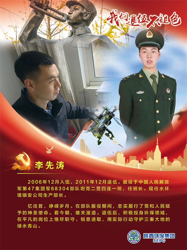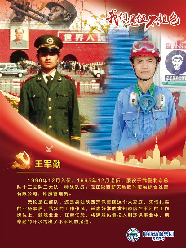 他們把青春的時光獻給軍營,揮灑青春、保家衛國,如今他們帶著軍人的一腔熱血和優良作風在陜西環保集團守護全省藍天、碧水、凈土的“保衛戰”里續寫輝煌,制服的顏色變了,但為民的初心永不褪色。戎裝在身,他們保家衛國;退役歸來,他們堅守崗位,用實際行動證明著退役不退志,退伍不退色。在第95個建軍節之際,陜西環保集團融媒體平臺用一張張海報向“老兵”致敬。