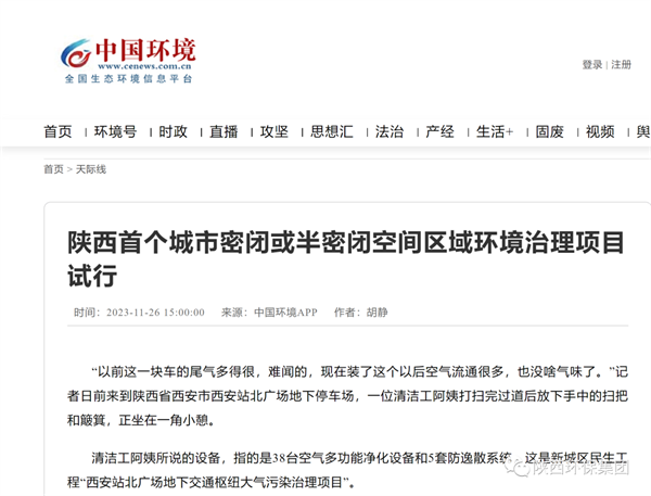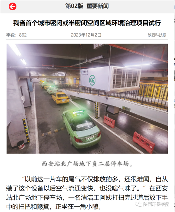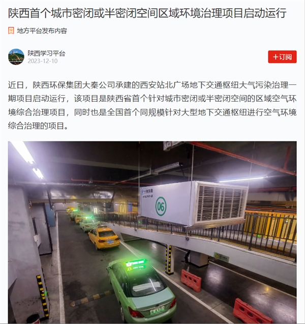 近日,學習強國、中國環境報、陜西科技報、三秦企業文化網、陜西國資等主流媒體對陜西環保集團大秦公司承建的全省首個城市密閉或半密閉空間區域環境治理項目“西安站北廣場地下交通樞紐大氣污染治理一期項目”大氣污染治理成效等情況進行了報道,現刊載如下,以饗讀者。