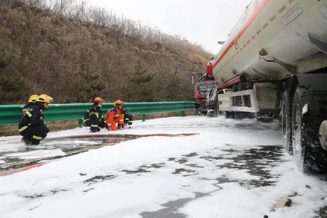 風雪交加,國道溝深路滑,應急救援車行駛了近7個小時后到達現場開展泄露污染物清理工作。由于現場無法使用機械設備,新天地公司應急救援隊人員只能穿好防護服進行人工清理。零下8℃的雪天,隊員們干的大汗淋漓,人群中冒出一股股熱氣。經過近6個小時的緊張作戰,直至深夜,現場共清理污染油泥9.38噸,均運回省危廢處置中心安全處置。