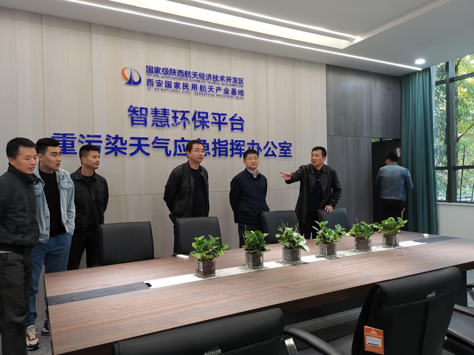 11月8日,西安國家民用航天產(chǎn)業(yè)基地管委會副主任賀延光帶隊到中圣公司承建的航天基地“智慧環(huán)保平臺、重污染天氣應急指揮辦公室”檢查平臺建設(shè)及運行工作。