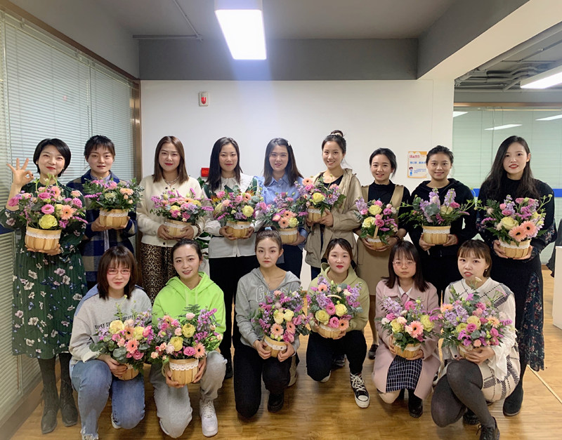 本次活動共吸引17位女職工參與,大家齊樂融融地享受插花制作的快樂,感受藝術在生活中的小情趣。活動現場,花藝師給大家介紹了鮮花的學名、養花常識,講授選花、裁剪、顏色搭配、造型等方面的插花技巧。大家手持剪刀,在清新的花香間,精心構思、認真修剪,一步一步制作私人訂制的插花作品,隨著時間的流逝,一件件春意盎然、清新淡雅的插花作品盛開在大家的手中。(陳楠)