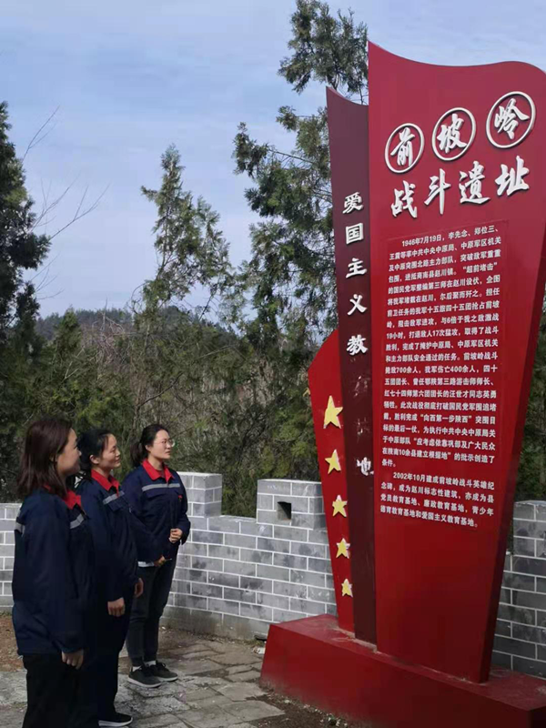 3月2日,秦楓公司組織女職工前往趙川鎮前坡嶺戰斗遺址參觀學習,接受愛國主義教育。此次活動感受到了革命先輩的豐功偉業,激發了女職工向先輩們學習的熱情,進一步弘揚了紅色文化、傳承紅色基因。(段行)