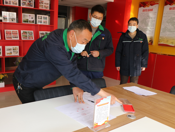 黨員羅洪斌帶領(lǐng)預(yù)備黨員及入黨積極分子王金博、秦偉、趙衛(wèi)強(qiáng)、呂曉武、周敏、陳蘭等在職工食堂負(fù)責(zé)維持秩序及日常物資發(fā)放工作;才遞交入黨申請書不久的閆文平也加入了疫情防控工作中,統(tǒng)計(jì)生產(chǎn)物資、疫情防控物資數(shù)量,編制《醫(yī)療廢物收集轉(zhuǎn)運(yùn)管理方案》,全力完成年末各項(xiàng)任務(wù)。