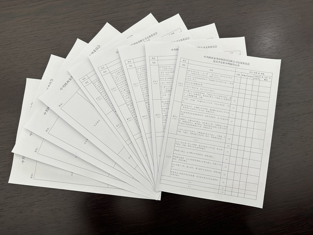 2023年以來,秦邦公司黨支部對黨員教育管理工作進行不斷創新探索,制定《黨員積分管理辦法》,形成了一套制度化、常態化的工作機制。黨員積分明細主要由基礎分、履職分及獨立加分項,共3大類15項操作有序、評定嚴肅的考核指標組成。采取“黨員自主申報、黨小組初評、黨支部核定、公開欄公示”的四級管理模式,切實增強黨支部對黨員評價管理的真實性、直觀性。同時公司將黨員積分結果作為黨支部標準化規范化建設工作的重中之重,采取善則賞之、過則匡之的具體措施強化結果運用。通過一系列舉措,黨支部形成了優秀黨員添動力,落后黨員有壓力的良好奮進局面。